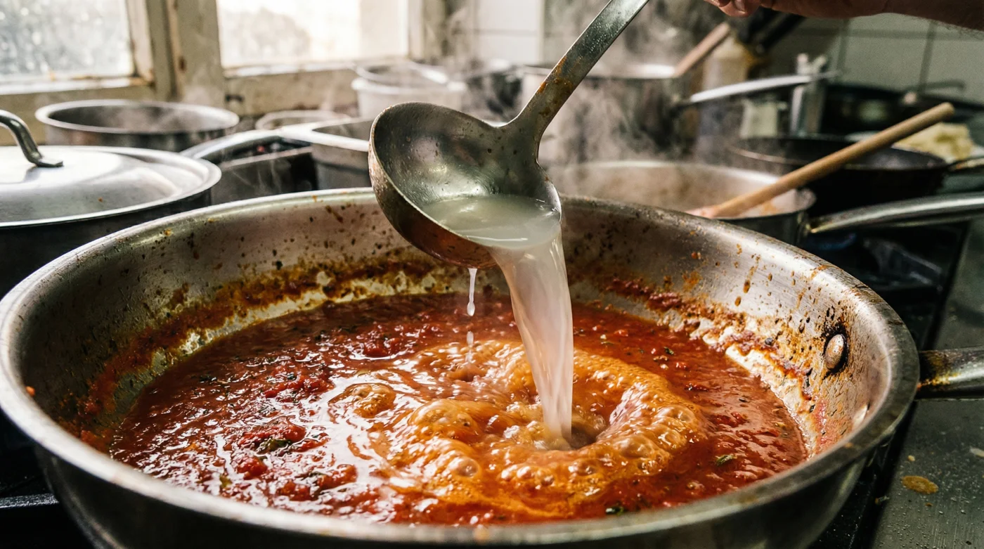 Das Problem liegt in diesem Fall nicht in deiner Soße, an den Tomaten oder an der Wahl deiner Pasta. Der entscheidende Fehler passierte genau in dem Moment, als das Kochwasser gurgelnd im Abfluss verschwand. Wir alle haben von klein auf gelernt, dieses Wasser als reines Abfallprodukt zu betrachten. Ein simples Relikt des Garprozesses, das seinen Zweck erfüllt hat, sobald die Nudeln weich sind. Doch in Wahrheit hast du gerade das wertvollste Bindemittel deiner gesamten Mahlzeit weggeschüttet. Betrachte dieses Wasser von nun an nicht mehr als Abfall, sondern als den flüssigen Kitt deiner Zutaten.